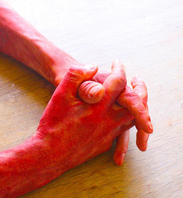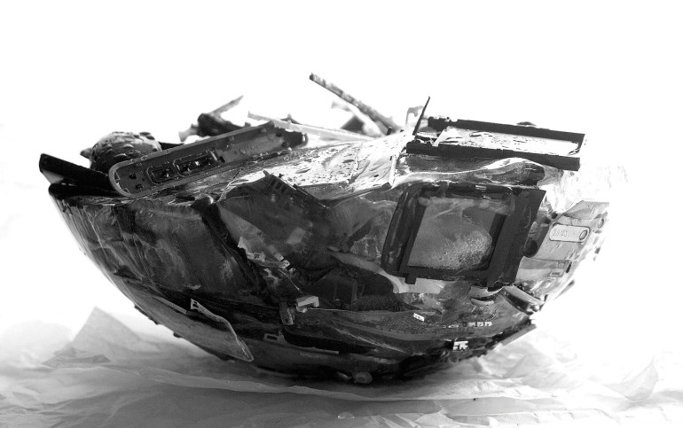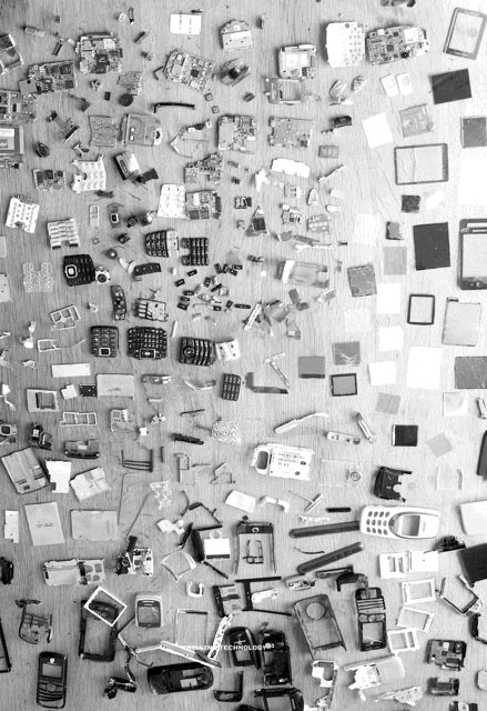 Mit dem killing technology will ich auf diese Problematik hinweisen. Ich habe 12 alte Handys mit Werkzeugen zerlegt und dadurch den Prozess des Zusammenbauens rückgängig gemacht. Das Zerlegen der Handys habe ich mit einem kurzen Stop-Motion-Video dokumentiert. Beim Arbeiten hatte ich meine Haut rot gefärbt, als Symbol für das Blut, das an unseren Smartphones klebt. Die Handyteile habe ich auch zu Bildern arrangiert und fotografiert. Die Einzelteile habe ich zudem in Wasser eingefroren, als Symbol für meinen Wunsch, dem unfairen Treiben Einhalt zu gebieten.